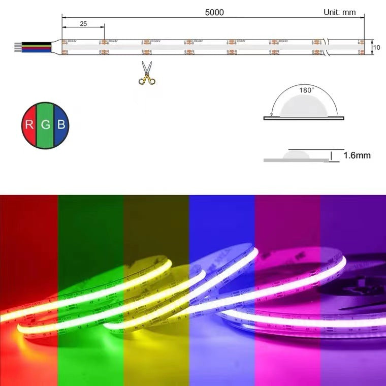 Experience seamless illumination with our Dot-Free COB LED Strip Lights, designed with advanced FCOB (Flip Chip-On-Board) technology. Unlike traditional SMD strips that create visible light spots, our COB series provides smooth, spotless, and uniform lighting — ideal for high-end interior and commercial applications.