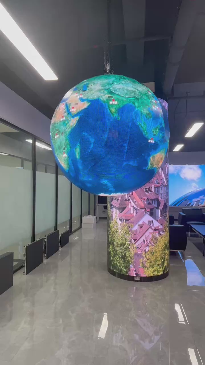 As you can see, 3D full-color indoor LED spherical display is a very complex structure and display effect, its basic composition needs at least 3-9 special shapes or more to form the final picture. For the solution of 3-D Full-color Indoor LED Spherical Display, we have abundant experience and case demonstration.