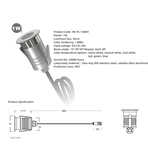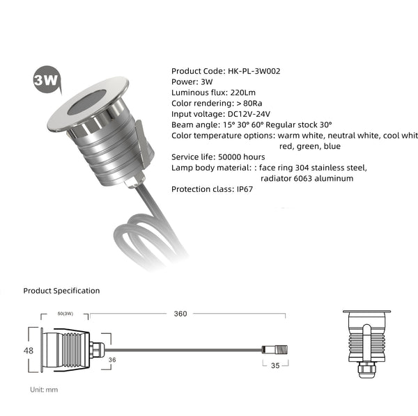 8PCS Pack 1W/3W DC12-24V IP67 Waterproof LED Step Light Villa Garden Scenic Light One Beam Light LED Projection Light