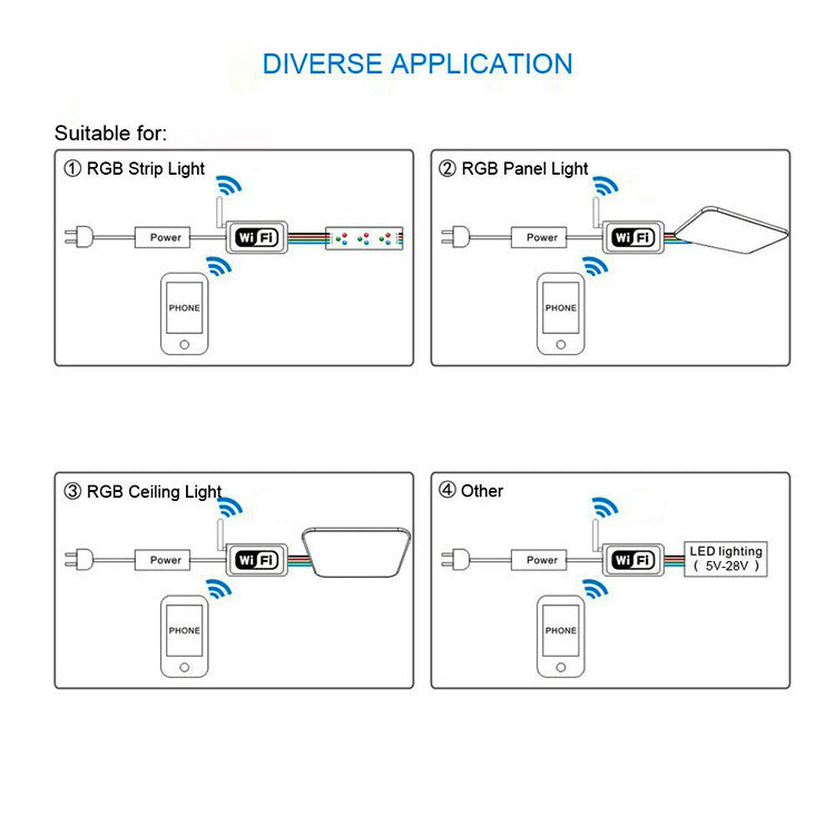 Wireless WiFi Smart Phone APP LED Controller or with 24Key IR Remote Controller for RGB LED Flexible Strip Lights