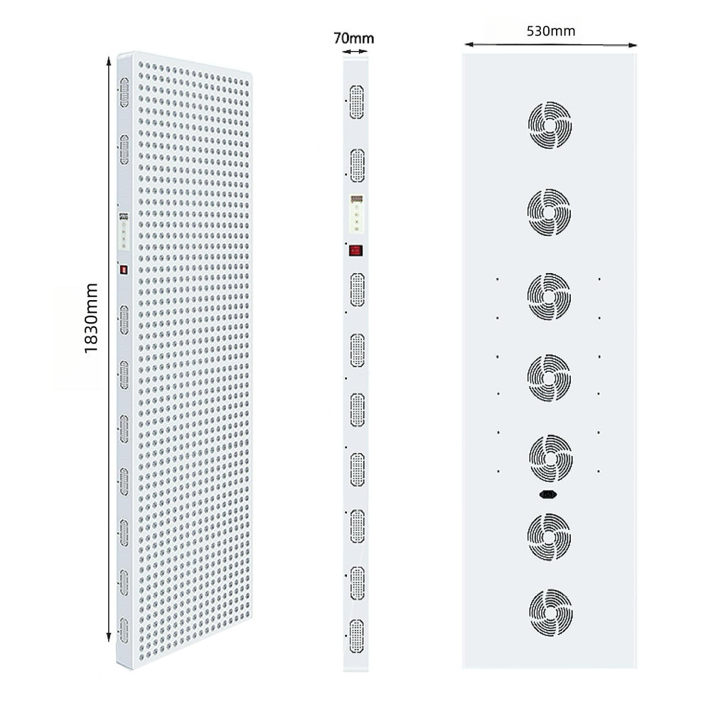 Es verfügt über 297 LEDs, die zu gleichen Teilen rotes und nahinfrarotes Licht ausstrahlen.