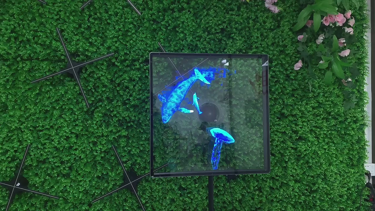 Deckenhalterung der F-Serie mit quadratischem Schutzgehäuse | Kompatibel mit 3D-Hologramm-Lüftern der F-Serie ≤80 cm | Geschlossenes Sicherheitsdesign