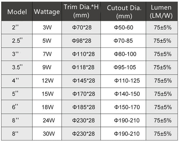 * Watt-Optionen: 3 W, 5 W, 7 W, 12 W, 15 W, 18 W, 24 W