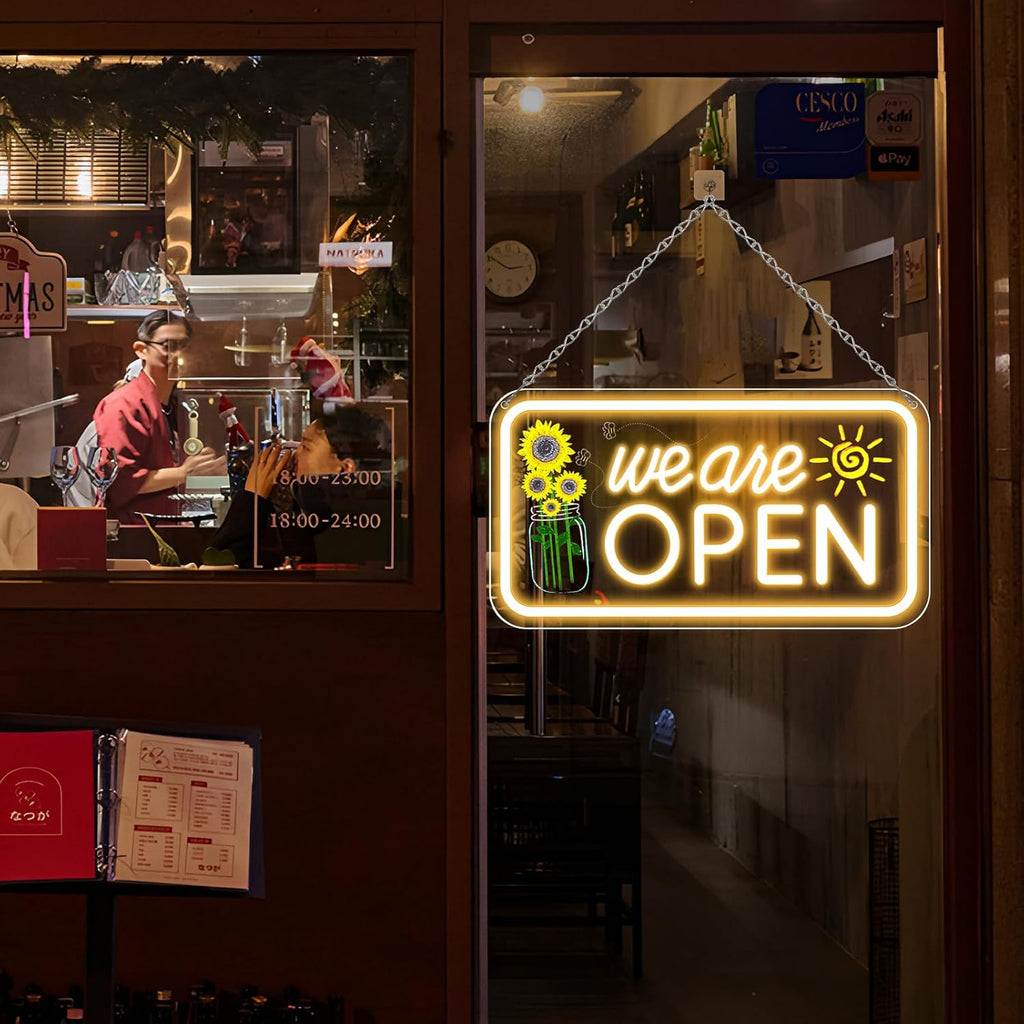 - Helles und elegantes vertikales LED-Schild „Wir haben geöffnet“, um leicht Kunden anzuziehen.