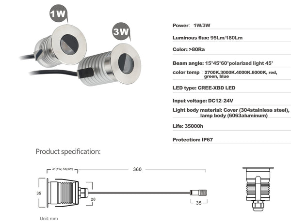 8pcs Pack 1W/3W DC12-24V IP67 LED Step Light Stainless Steel Inground LED Light with Anti-glare Half Moon Brushed Lens
