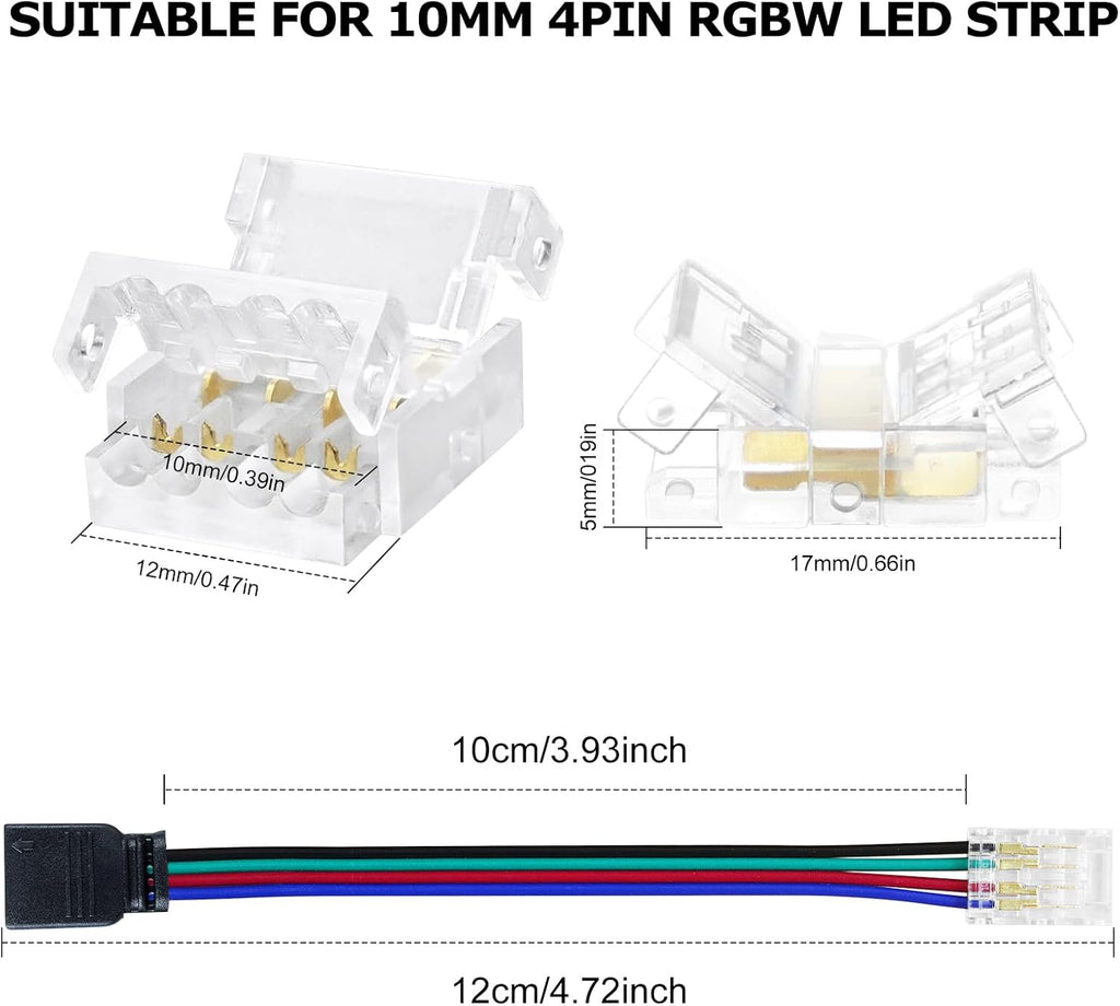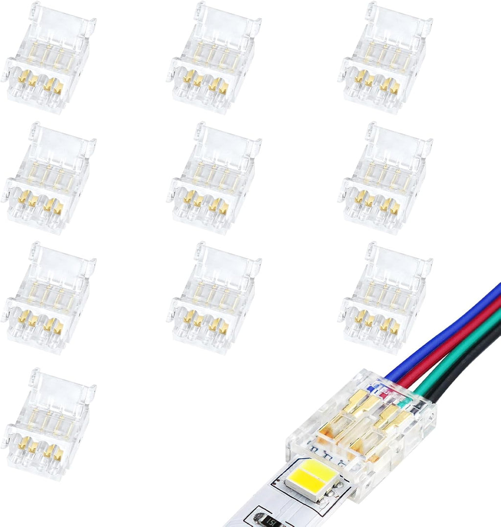Transparent Crystal LED Strip Connectors – 10mm 4Pin Solderless Clips | Strip to Wire / Strip to Strip / Female Plug – Local Stock US/UK