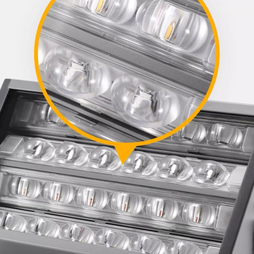 The fixture adopts a robust die-cast aluminum housing combined with a high-transmittance protective lens, offering excellent heat dissipation, impact resistance, and stable performance in outdoor environments.