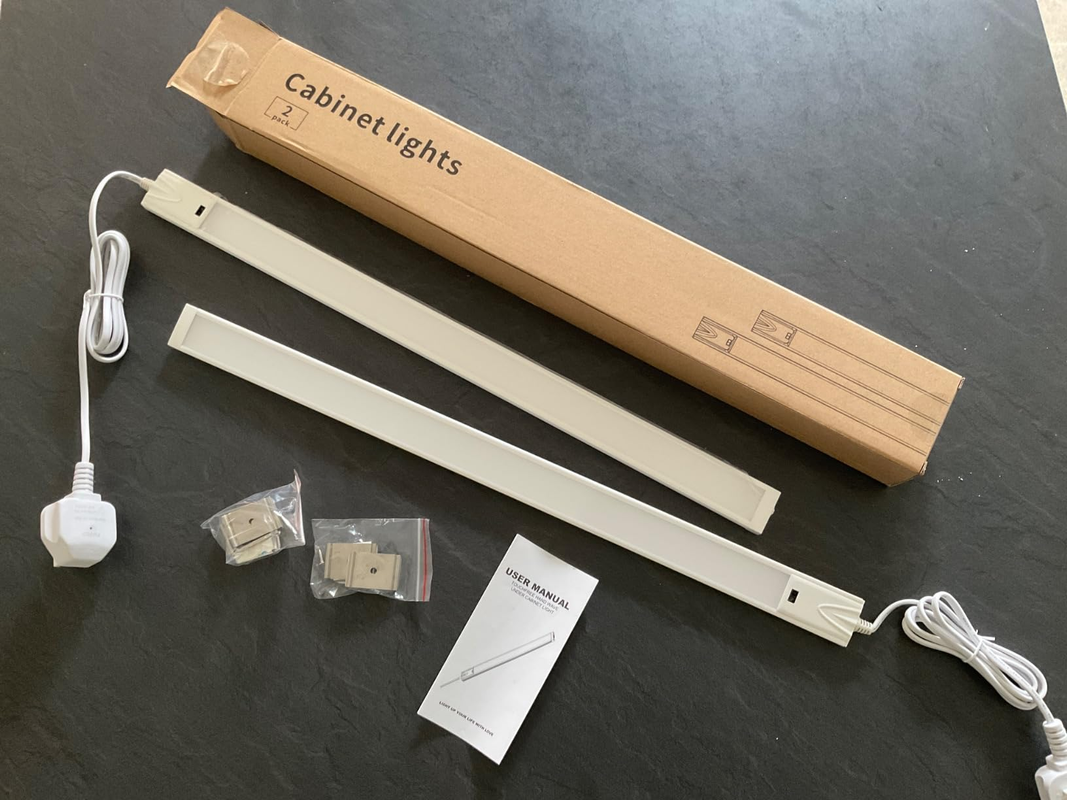 2-Pack – 22", 3CCT Adjustable, White Finish (US Plug-in) | 2 × 22" light bars (hand-wave sensor) • US plug-in power cord/adapter • Adhesive pads & cable clips • User manual |