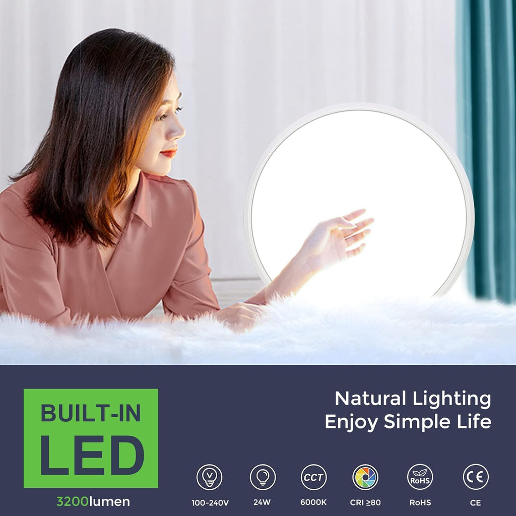 | Warm White (3000K) / 220–240V | 1 × 24W Flush Mount Ceiling Light, 1 × Quick Installation Guide, 4 × Screws, 4 × Expansion Tubes |