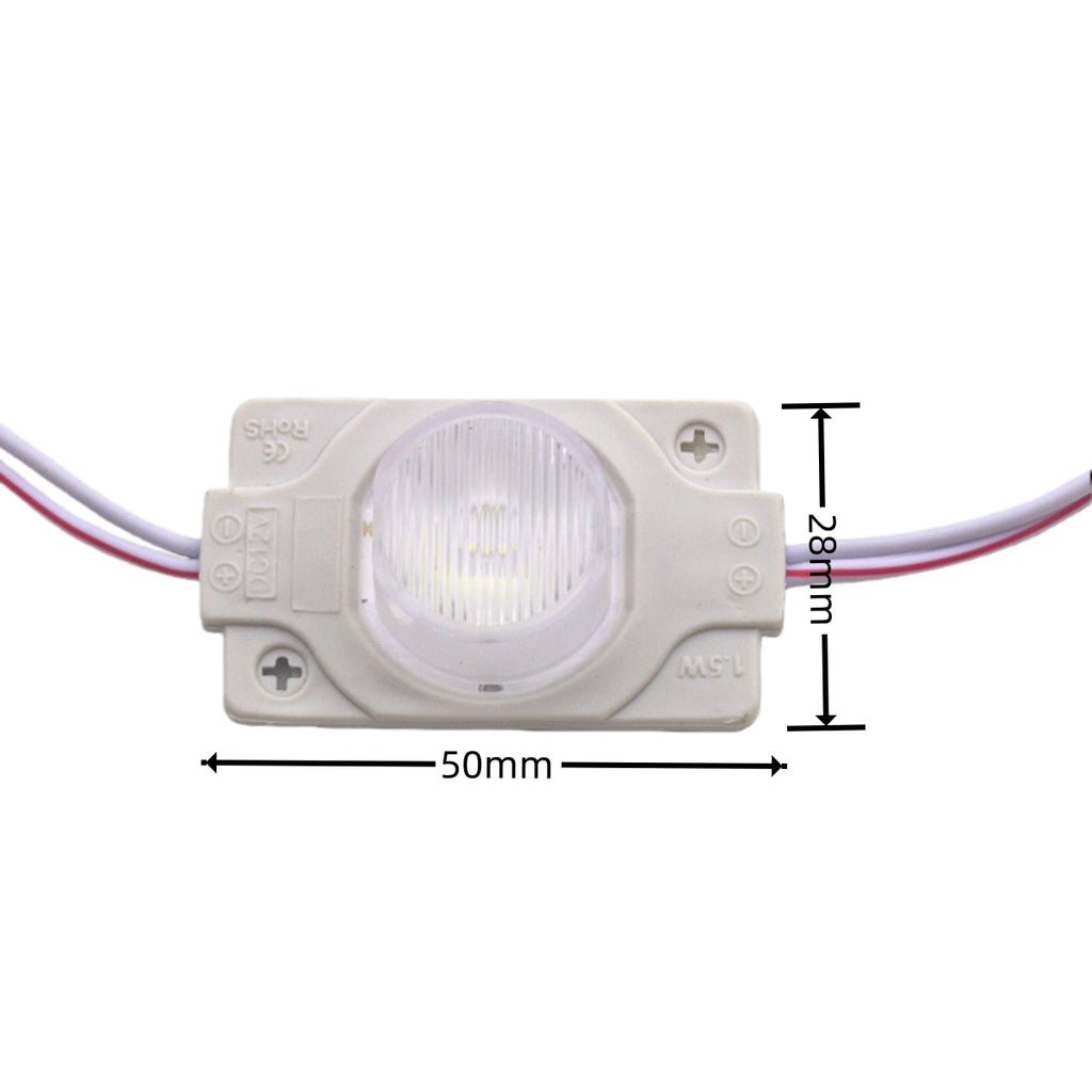 12V 1.5W LED Module with Lens, 20pcs/String, 150LM, IP65 Waterproof Sign Module for Light Box, Channel Letter, and Signage Backlighting – 6500K / 3000K / Red / Green / Blue / Yellow / Pink