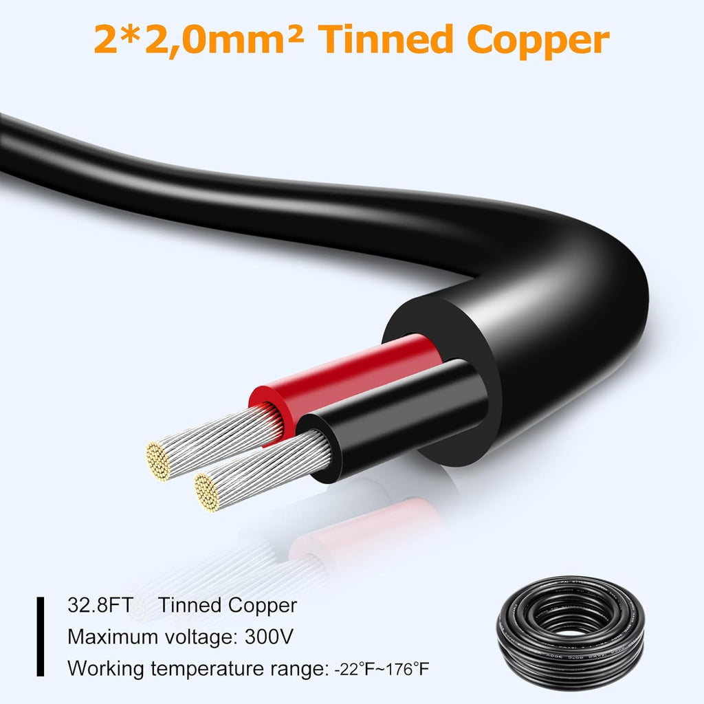 - 14 AWG stranded tinned copper wire, heavy-duty and flexible for stable performance