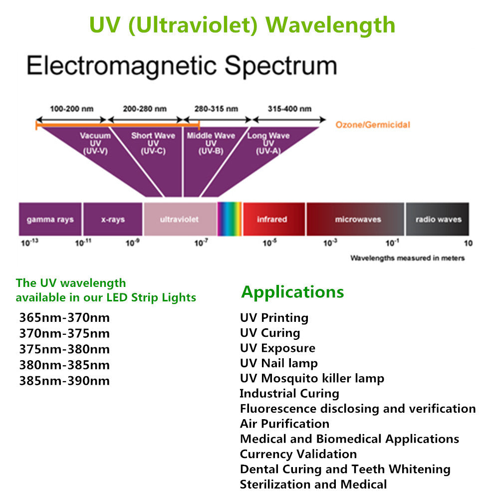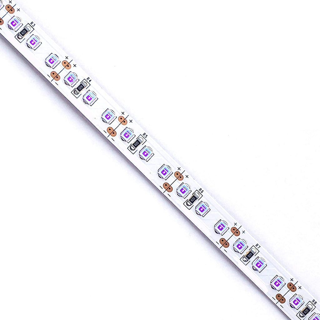 380nm-385nm SMD2835-300 12V DC <60W, 5Amp UV (Ultraviolet) LED Strip Light Non-Waterproof Flexible White PCB Strip Light Ideal for UV Curing, Currency Validation, Mosquito killer, Fluorescence disclosing and Medical Field