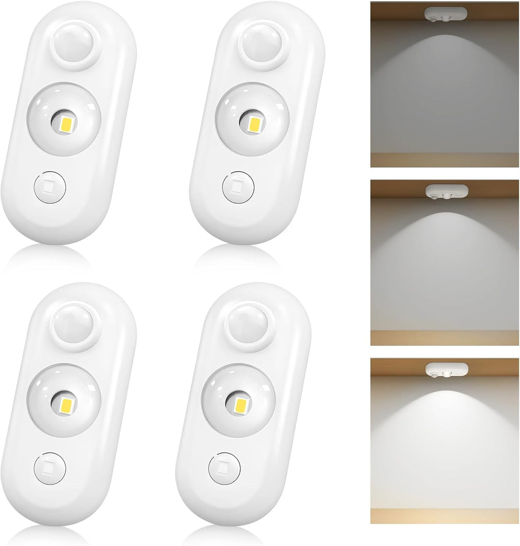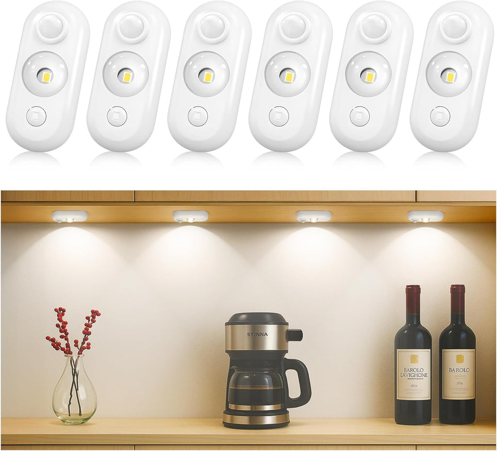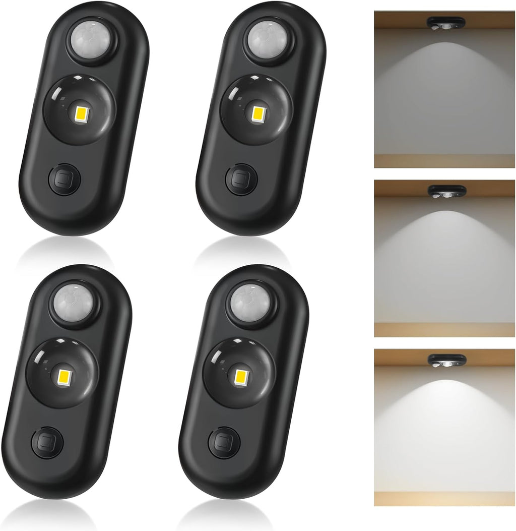 4/6 Pack Rechargeable Oval LED Closet Light | Motion Sensor, Tap Switch, Dimmable | Warm / Daylight White | Black / White Finish | Magnetic Mounting for Closets & Cabinets