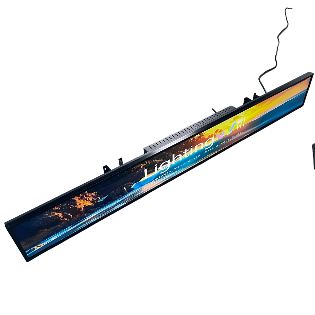 - Ultra-wide 56.6" LCD bar screen with Android OS, ideal for shelf-edge advertising, signage, and creative installations