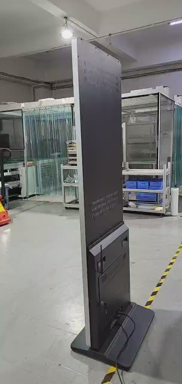 The unit also comes with lockable wheels and dual speakers. This floor-standing LCD poster display is ideal for high-traffic areas such as lobbies, hospitals, hotels, or campuses. It’s perfect for way finding in public spaces like train stations, airports, or subways, as well as for notifications. This non-touch commercial unit enhances visitor experience by providing clear, at-a-glance information and promotions.
