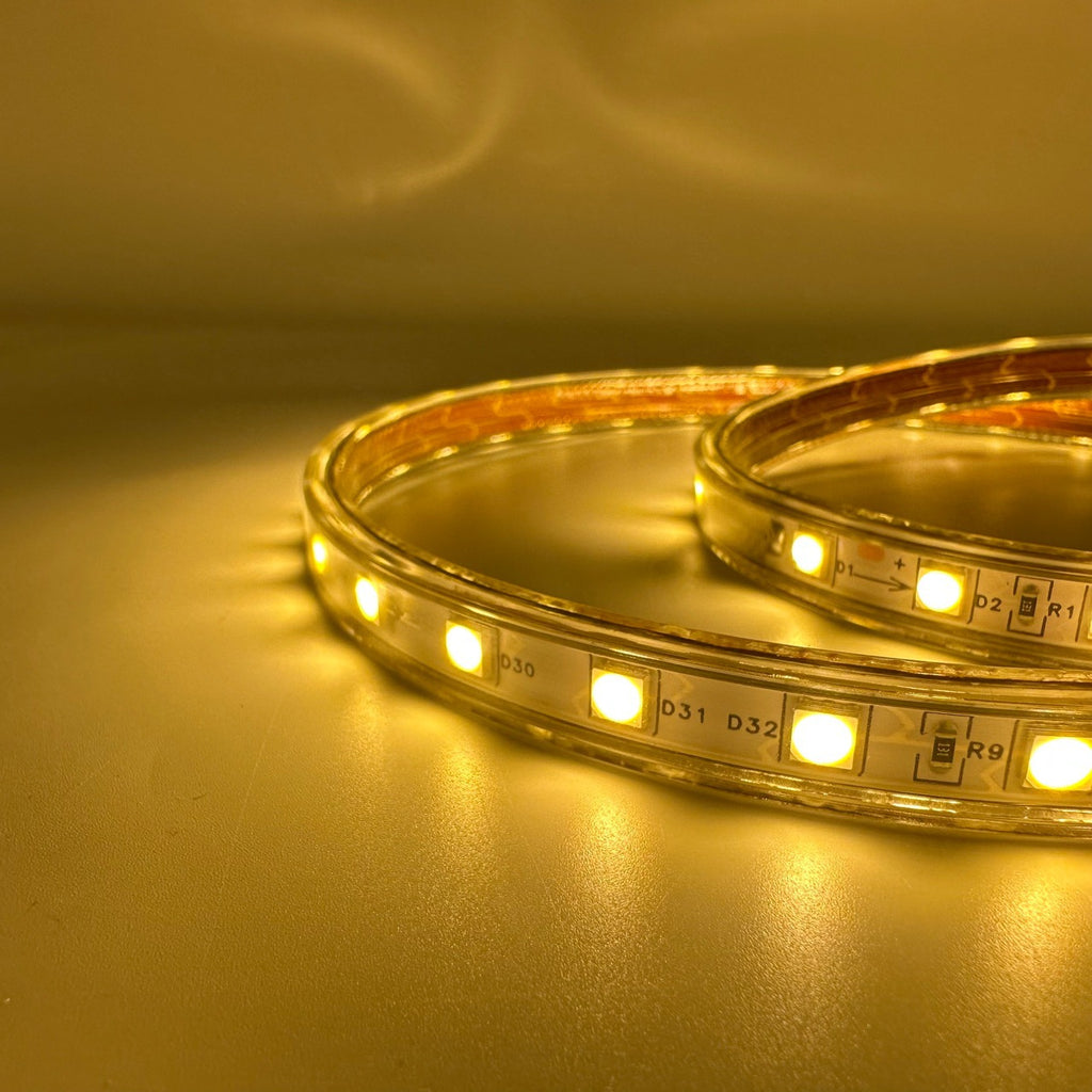 Encased in flexible, anti-UV PVC for outdoor durability. Resistant to rain, dust, and bending, suitable for gardens, building outlines, patios, and storefronts. -