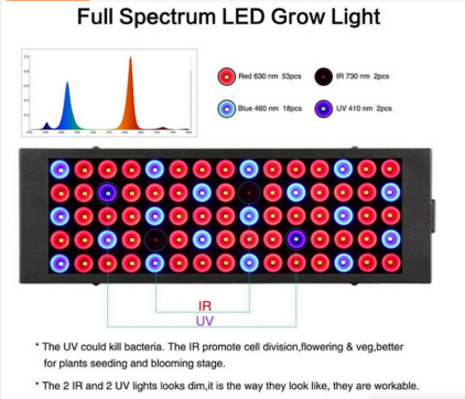75pcs SMD2835 53pcs Red 660nm+18pcs Blue 460nm +2pcs IR 730nm+2pcs UV 410nm LED Chip
