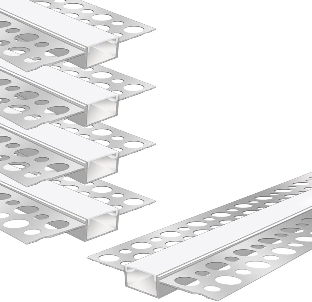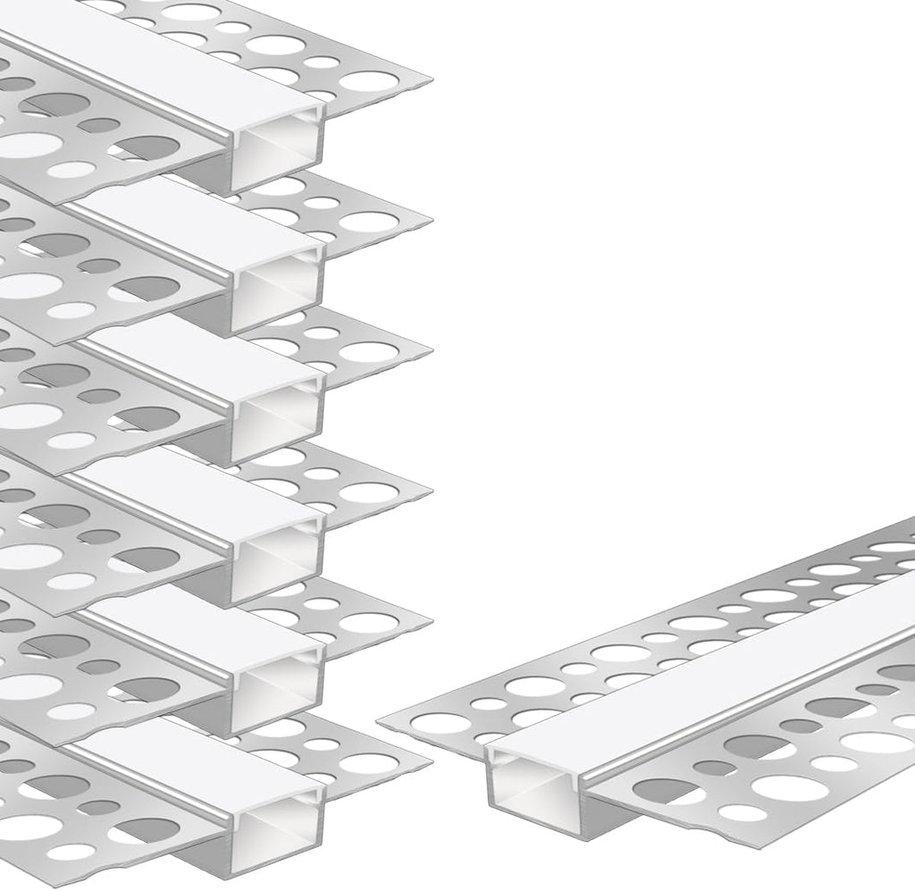 Double-Sided Plaster-in Drywall LED Aluminum Channels – Fit for 1 to 16mm LED Strip | 1Meter | Silver | Milky White Cover | 4 / 6 / 10 -Pack | Local Stock US/UK