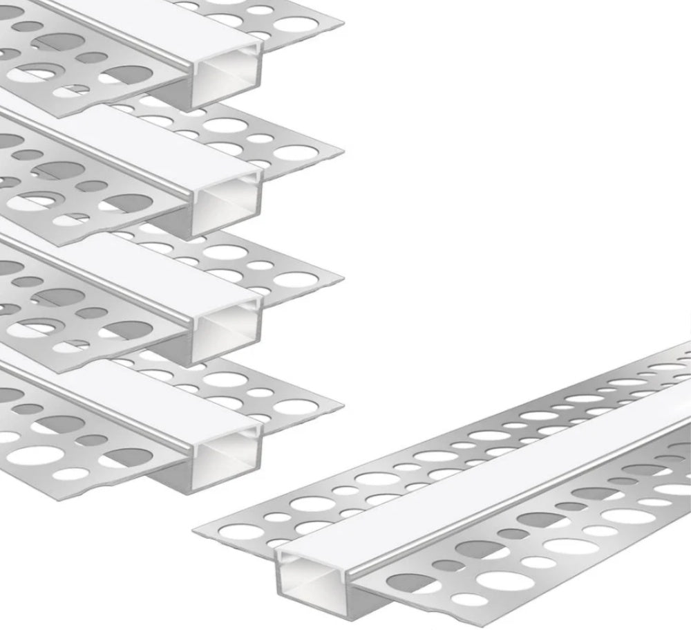 Double-Sided Plaster-in Drywall LED Aluminum Channels – Fit for 1 to 20mm LED Strip | 1Meter | Silver | Milky White Cover | 4 / 6 -Pack | Local Stock US/UK