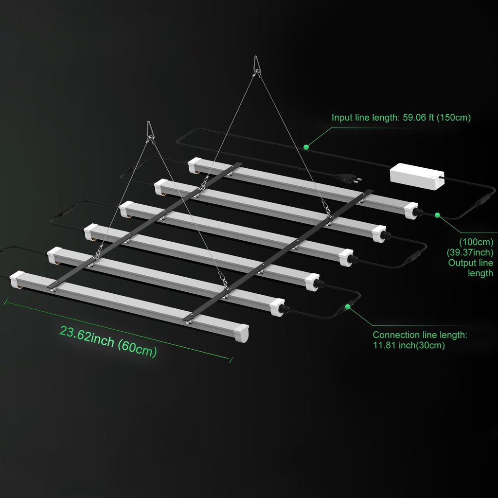 • Slim 60cm (23.6 inch) tube-style light bars fit plant shelves, grow racks, cabinets, and under-shelf installations for space-saving supplemental lighting.