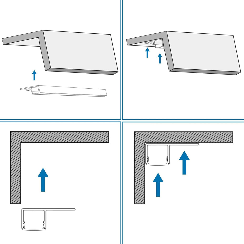 The end result for me was 2 pieces of this profile with white COB LED strip so super brightens up the area directly below my desk space ( and can i point out does not flood / blind anyone looking from behind me) and a second set of profiles to the rear with Neopixels in them shining on to the wall behind the desk.