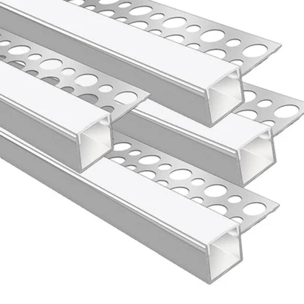 One-Sided Plaster-in Drywall LED Aluminum Channels – Fit for 1 to 9mm LED Strip | 1Meter | Silver | Milky White Cover | 4 / 6 / 10 -Pack | Local Stock US/UK