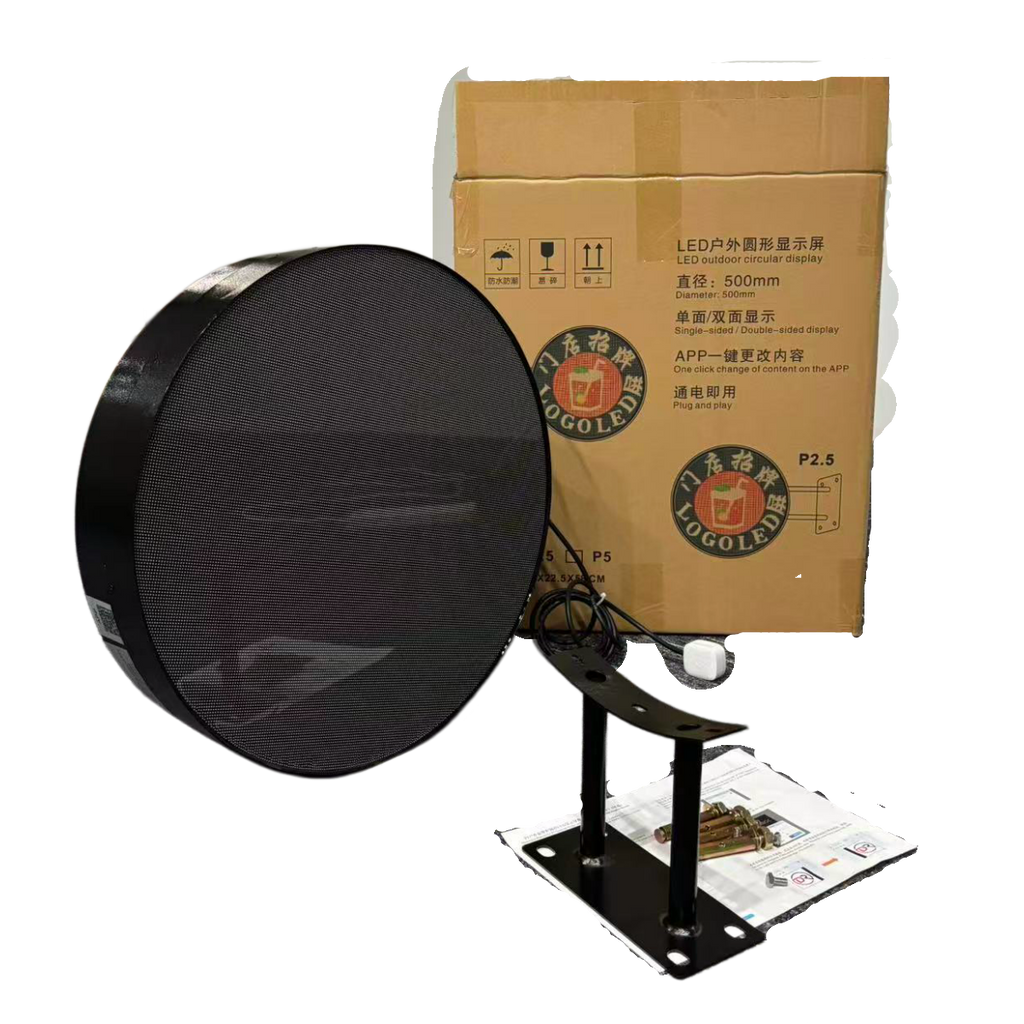 - 【Installation Method】: The Outdoor LED Logo Sign Screen comes with a mounting bracket, with which you can fix the Circle LED Logo Sign to wall or ceiling or on floor.