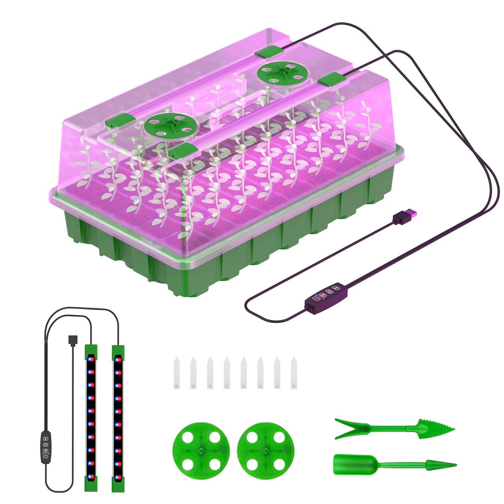 Seed Starter Tray with LED Grow Lights - 40-Cell | Adjustable Brightness and Timer | White & Blue Light / Red & Blue Light | Full Spectrum LEDs | USB Plug | for Indoor Plant Growing | 1 / 2 Pack