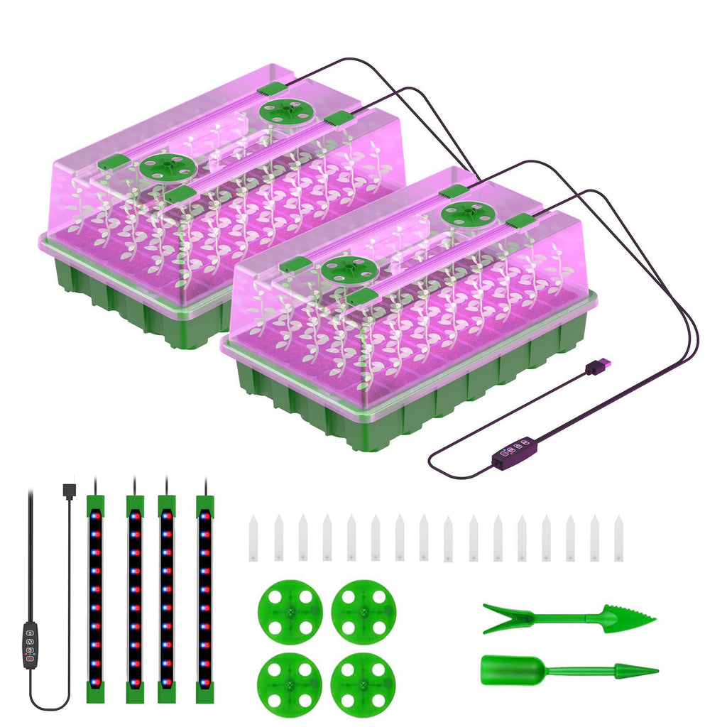 2-Pack (Red & Blue Light) 2 × 40-Cell Seed Starter Trays; 4 × LED Grow Light Bars; 1 × Shared Control Cable; 1 × User Manual