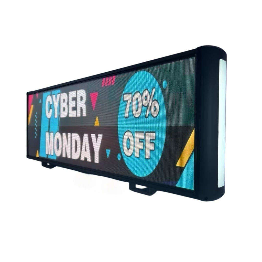 High-brightness dual-face LED advertising display designed for taxi and ride-hailing vehicles.