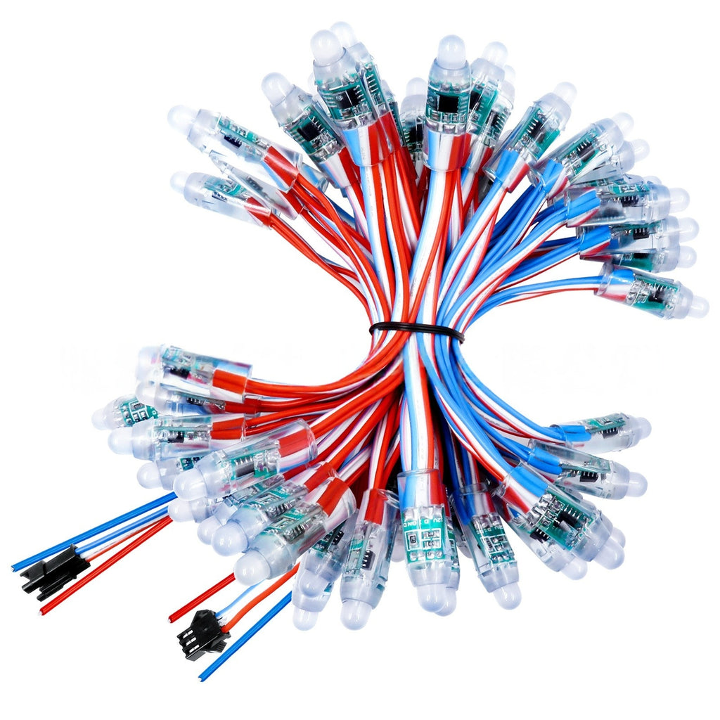 WS2811 RGBIC Addressable 12mm LED Pixel String Light, 50pcs/String, 0.3W DC12V IP67 Waterproof Color-Changing Dot Light for Channel Letter Signs, Advertising Boards & Architectural Lighting